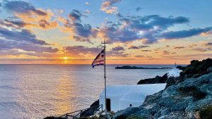 Coucher de soleil à Agios Nikolaos Krasas : Probablement, le plus beau coucher de soleil sur l’île, qu’il faut apprécier un après-midi d’été à côté de la petite église de Saint Nicolas qui a une longue histoire.